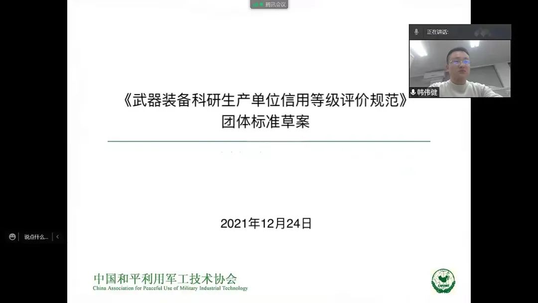 | 信用及信用秩序是社會(huì)經(jīng)濟(jì)活動(dòng)正常運(yùn)行的制度基礎(chǔ),良好的社會(huì)信用體系和信用制度能促進(jìn)資源有效配置,提高全社會(huì)經(jīng)濟(jì)運(yùn)行效率。信用體系的建設(shè)意義重大,尤其在軍工領(lǐng)域,軍民融合背景下,選擇“信得過(guò)”的企業(yè)進(jìn)入軍工領(lǐng)域尤為重要。2021年12月24日上午,中國(guó)和平利用軍工技術(shù)協(xié)會(huì)《武器裝備科研生產(chǎn)單位信用等級(jí)評(píng)價(jià)規(guī)范》團(tuán)體標(biāo)準(zhǔn)編制工作啟動(dòng)會(huì)暨第一次研討會(huì)以視頻會(huì)議形式成功召開。本次研討會(huì)共有63家參編單位82名代表出席,共同為標(biāo)準(zhǔn)制定建言獻(xiàn)策。