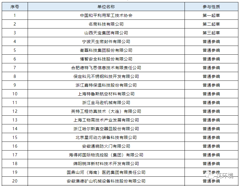 本次啟動(dòng)會(huì)達(dá)成預(yù)期目標(biāo),后續(xù)繼續(xù)由標(biāo)準(zhǔn)編制組對(duì)征集的意見(jiàn)建議進(jìn)行匯總和梳理,對(duì)草案進(jìn)行修改完善。 《武器裝備科研生產(chǎn)單位信用等級(jí)評(píng)價(jià)規(guī)范》團(tuán)體標(biāo)準(zhǔn)參與編制單位名單